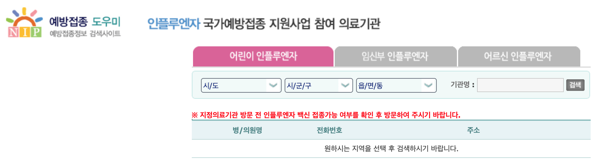 📌인플루엔자 국가예방접종 지원사업 참여의료기관 찾기 바로가기