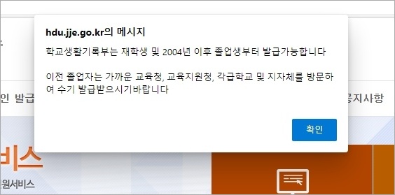 - 정부24에서의 발급대상은 2017년 2월 이후 초·중·고등학교 졸업생으로 졸업자만 신청가능합니다.
