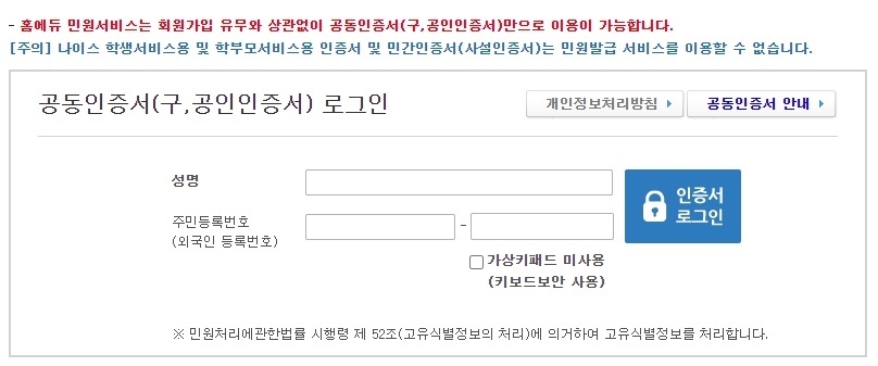 (학부모님이 이용하실 때는 학부모서비스를 이용하면 되는데요, 학보모 서비스에서도 민원서비스를 받으려면 공동인증서가 필요하고 학생등록의 절차가 필요합니다.)