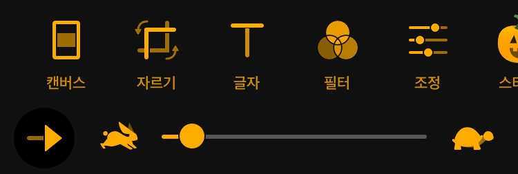 하단에 필터 및 사이즈 조절 등의 세부 편집 기능이 있고,