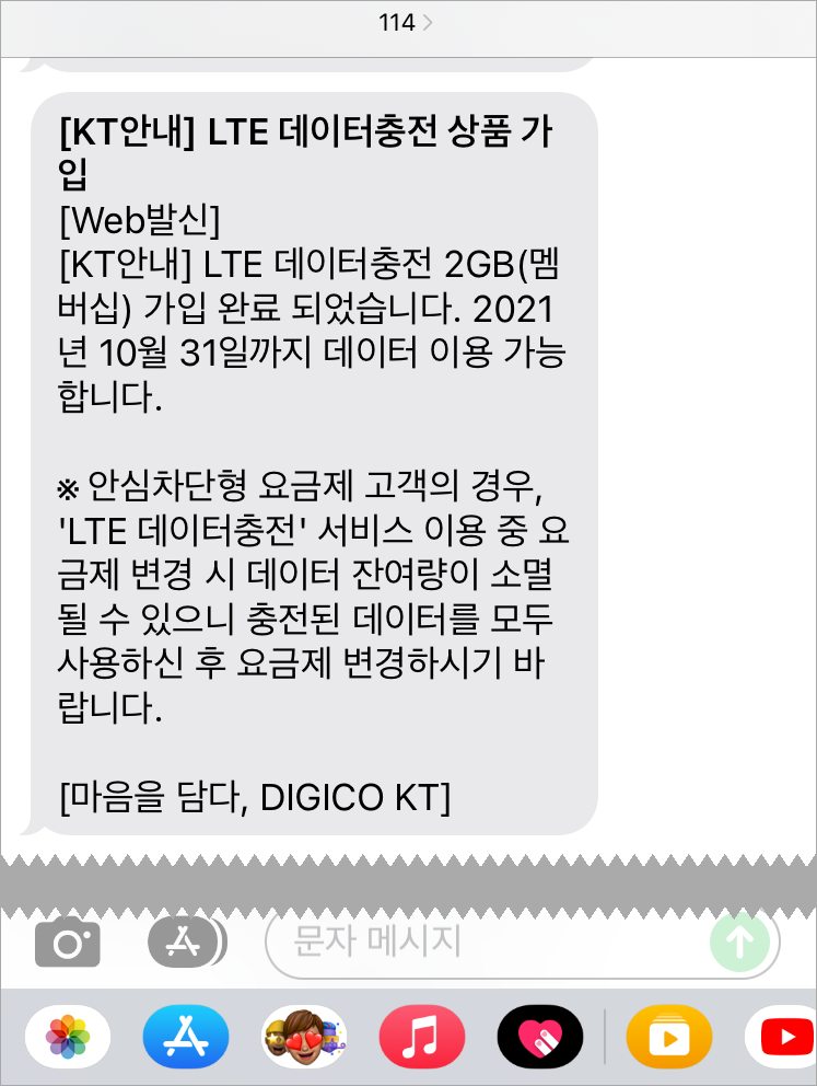 포인트로 결제되면 데이터가 충전되었다는 내용을 문자로 확인받으실 수 있는데요~