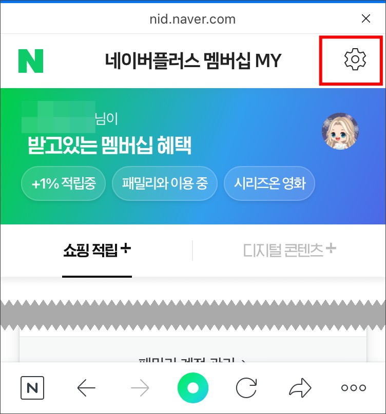 설정 창에서 네이버플러스 멤버십 관리로 들어갑니다.