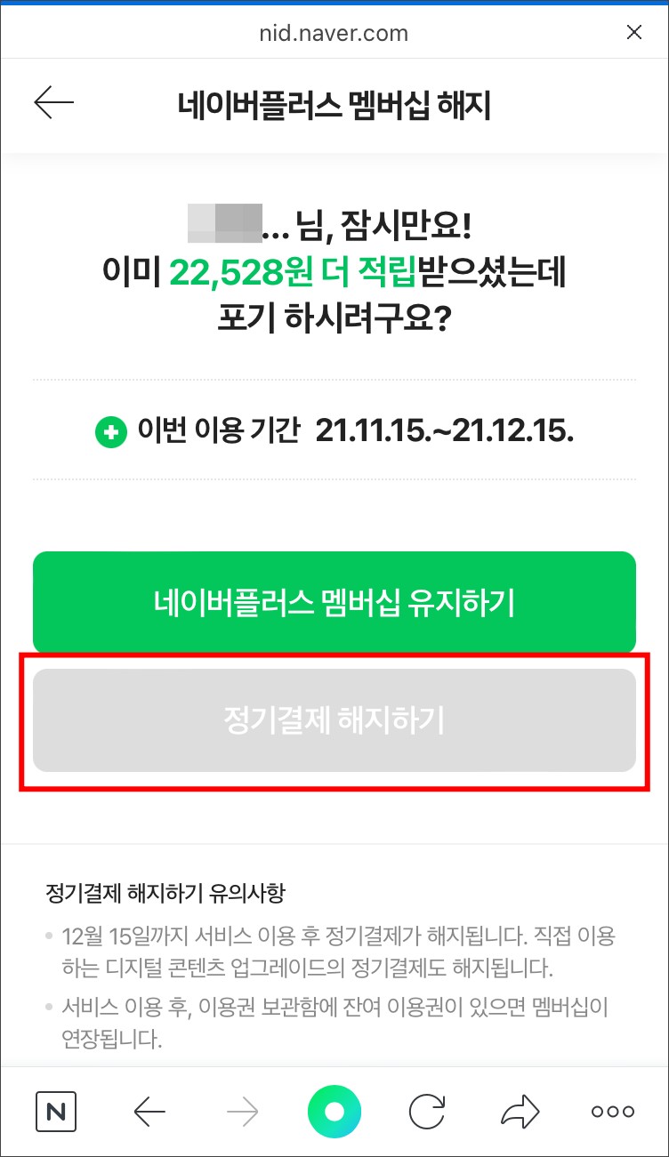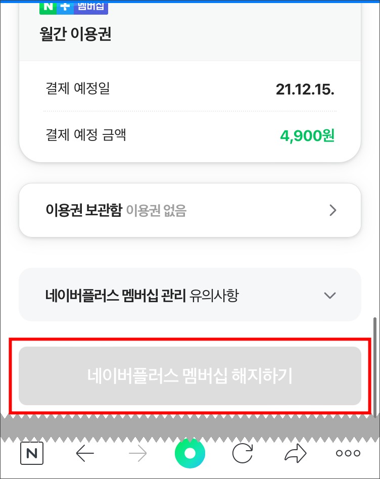 모바일앱에서 네이버 플러스 멤버십 해지하기