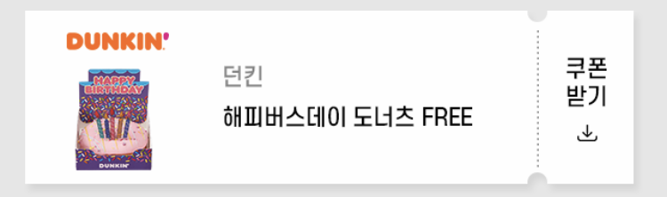 바로 요 아래 쿠폰이에요~ 던킨 해피버스데이 도너츠!