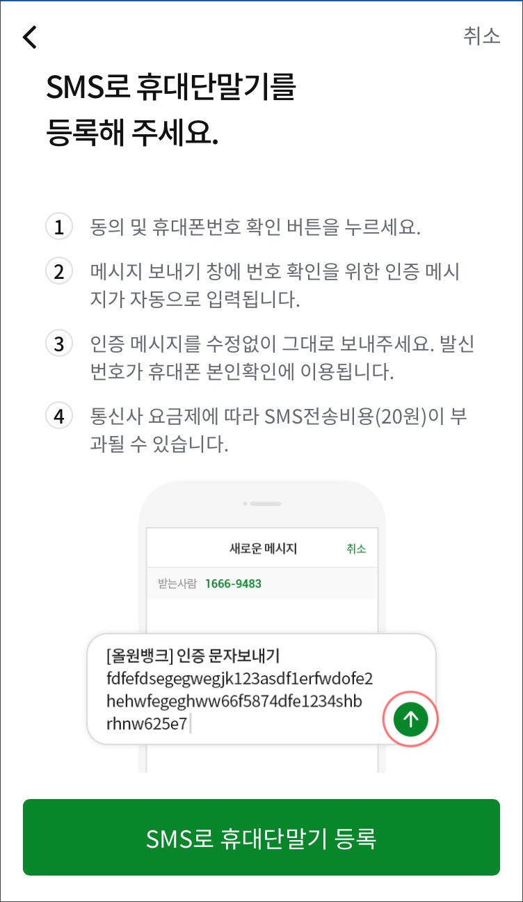 sms로 휴대 단말기 등록을 먼저 해주어야 한다고 해요~