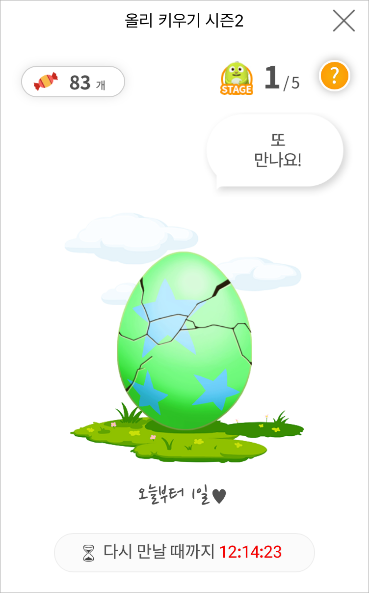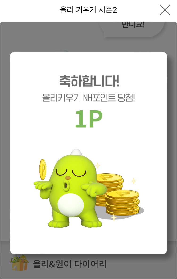 올리, 원이 키우기는 1일 1회 참여할 수 있습니다.