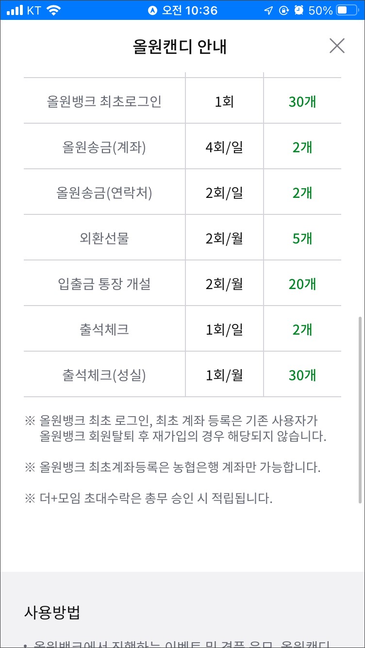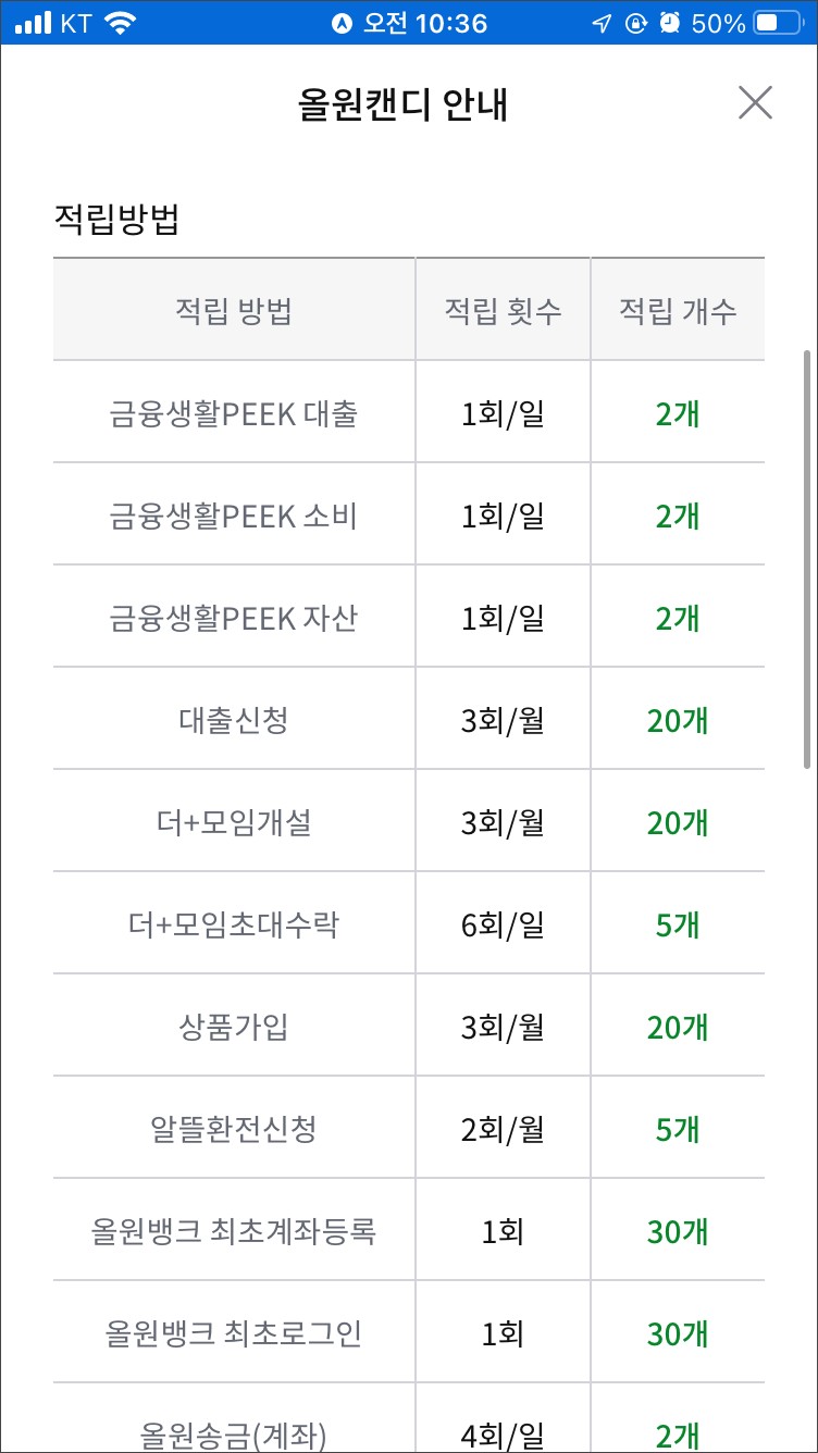 그동안 잘 몰랐던 올원뱅크의 올원캔디에 대하여 알아보았습니다.