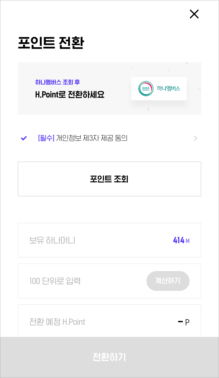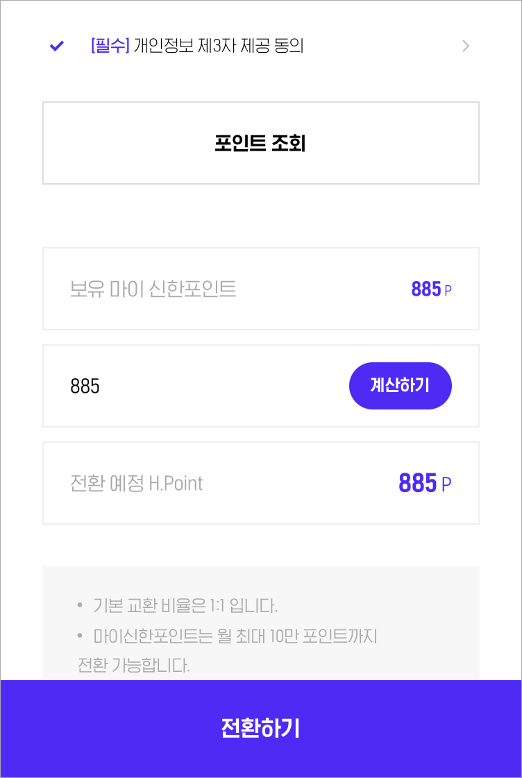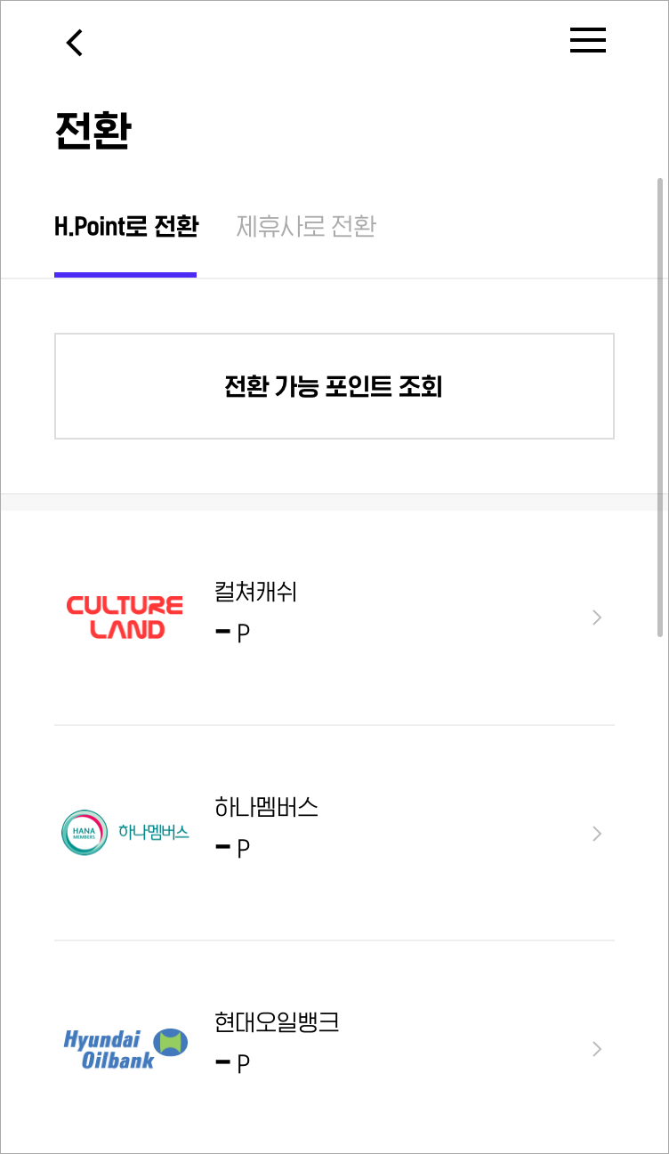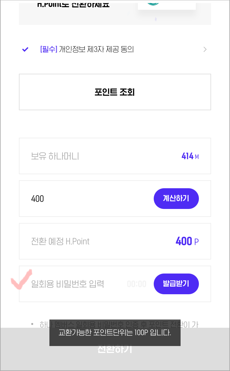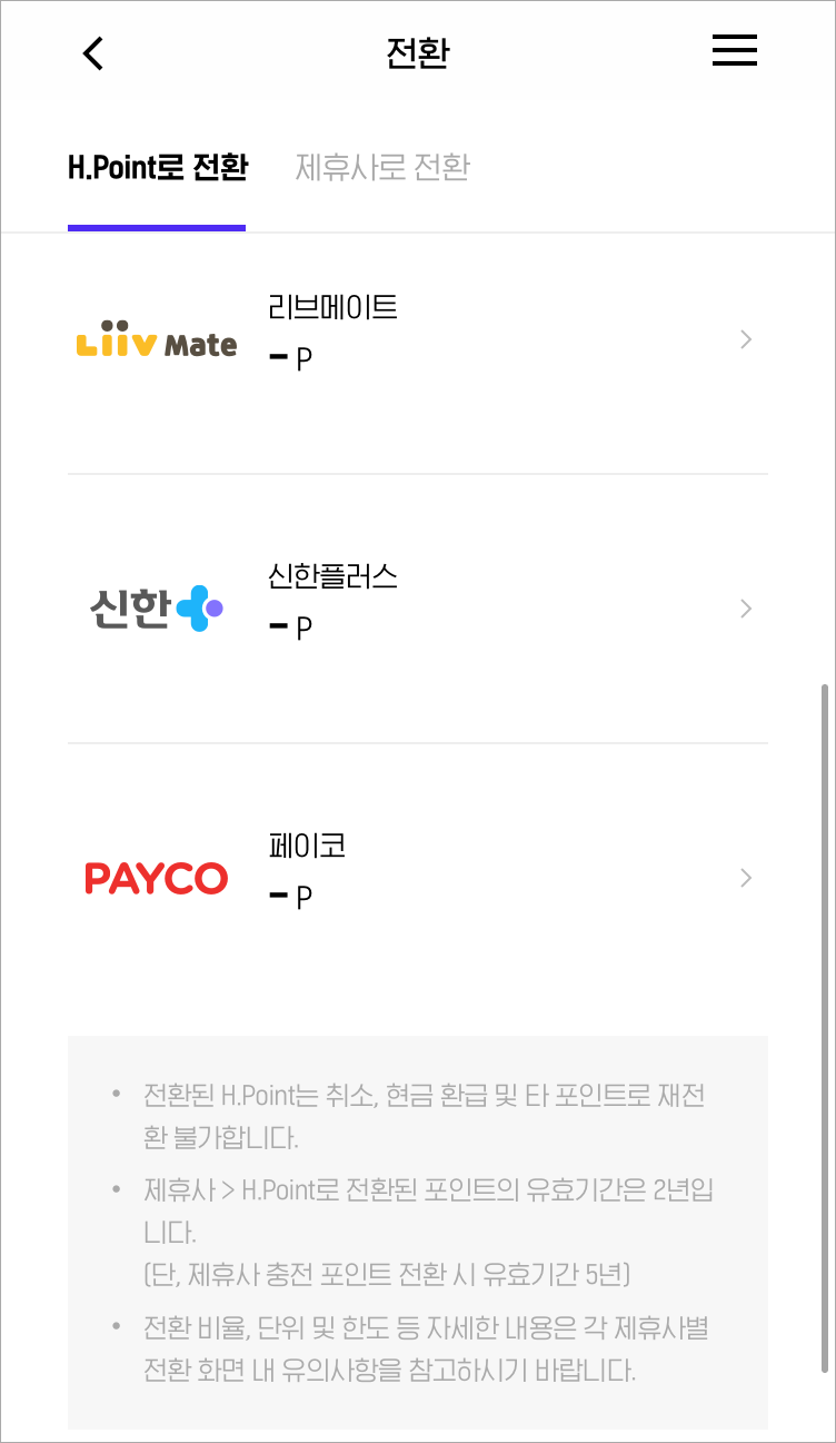 제휴포인트 -> H포인트로 전환하기