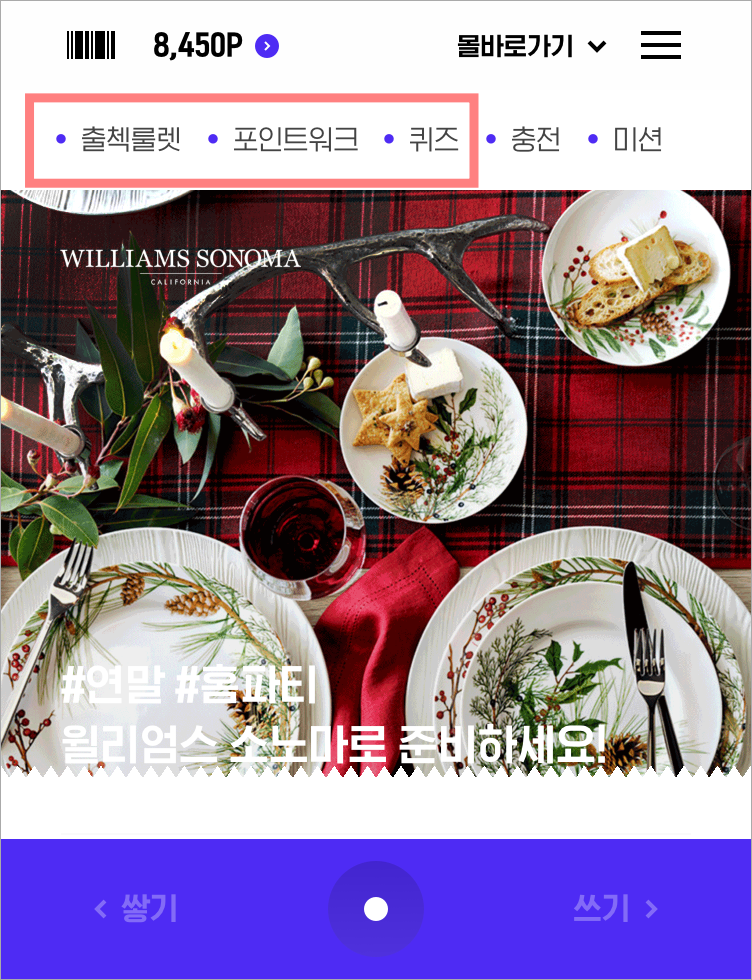 그동안 출석룰렛, 포인트워크, 퀴즈 등을 하면서 모은 포인트가 8,450포인트네요.