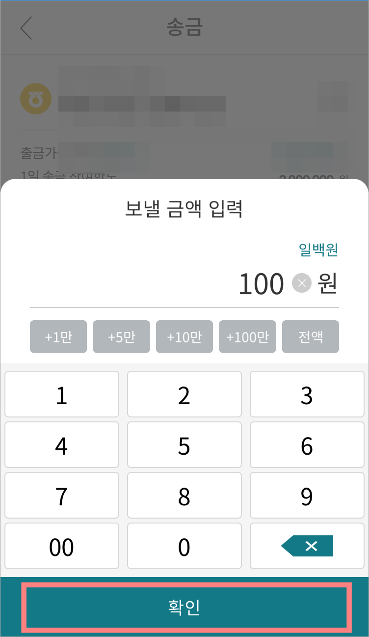 보낼 금액도 입력해주시구요!~