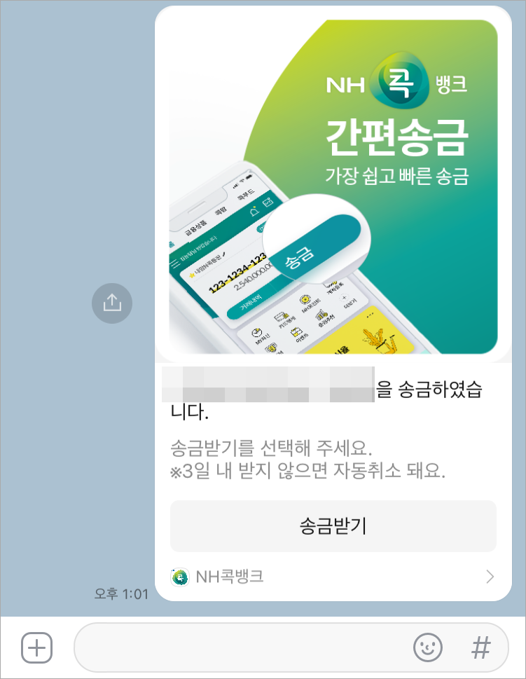 문자로 송금메시지가 가고 링크를 통해 송금받기가 가능합니다.