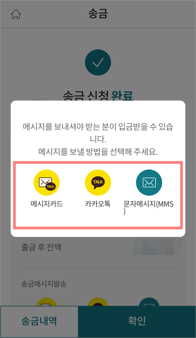# 송금메시지 보내기 - 카카오톡