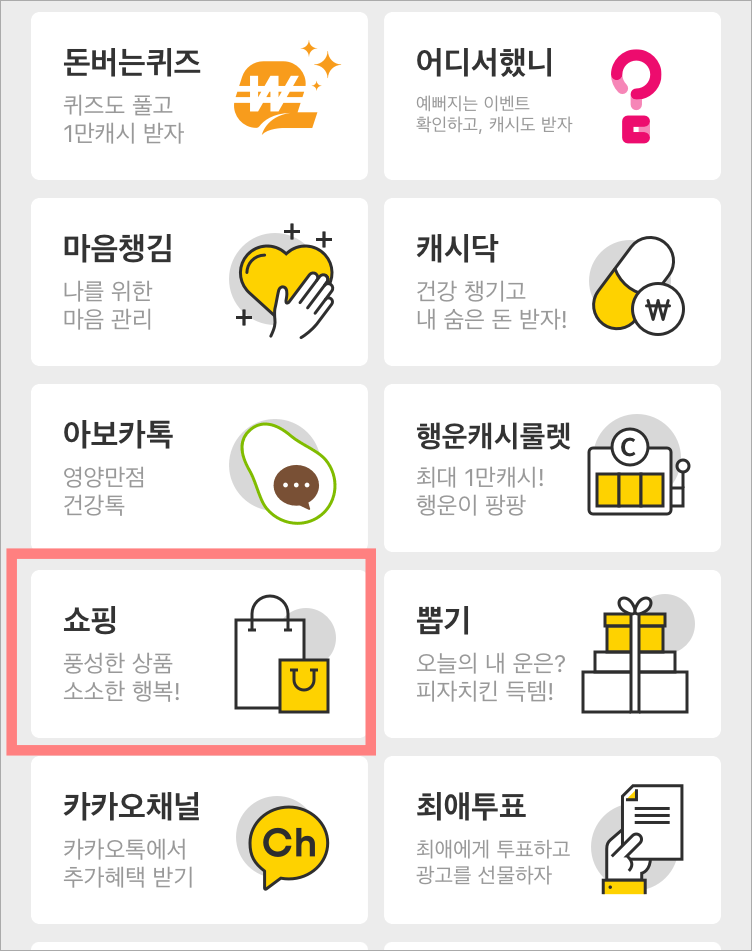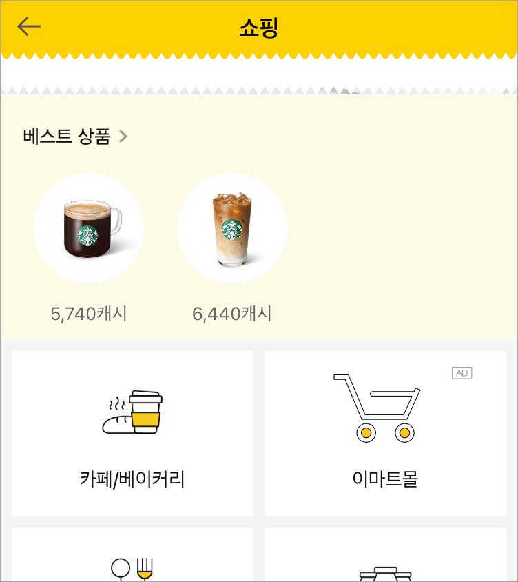 어느정도 캐시가 쌓이면 쇼핑을 통해 쿠폰 구매가 가능합니다.