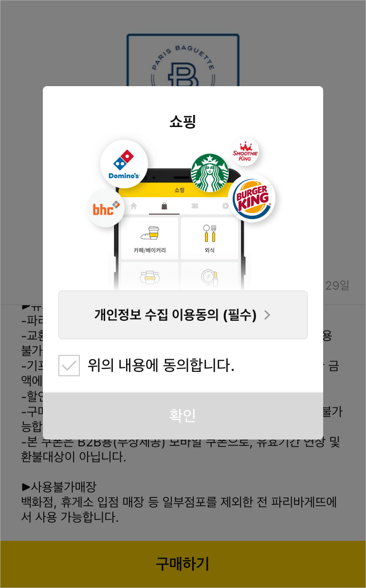 개인정보 수집동의 체크하고, 구매하시면 됩니다.