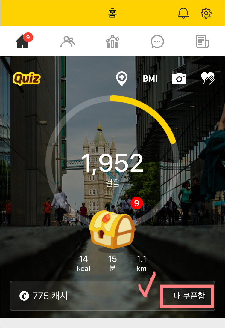 걸으면 저절로 캐시가 쌓이면 좋겠지만, 보통 걸음수에 맞게 클릭을 해줘야 하는 것들이 보통입니다.