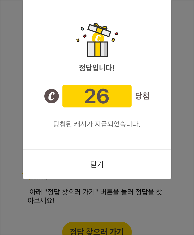 위 이미지에서 처럼 돈 버는 퀴즈가 팝업으로 나오면 클릭하여 들어가거나,