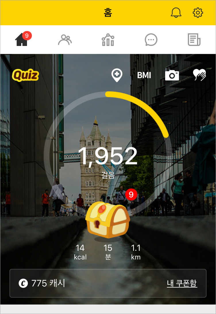 저는 자꾸 오는 알림이 신경 쓰여 꺼두고, 걸음 수를 채운 후 보물상자를 클릭하러 갈 때 퀴즈를 푸는 편입니다.