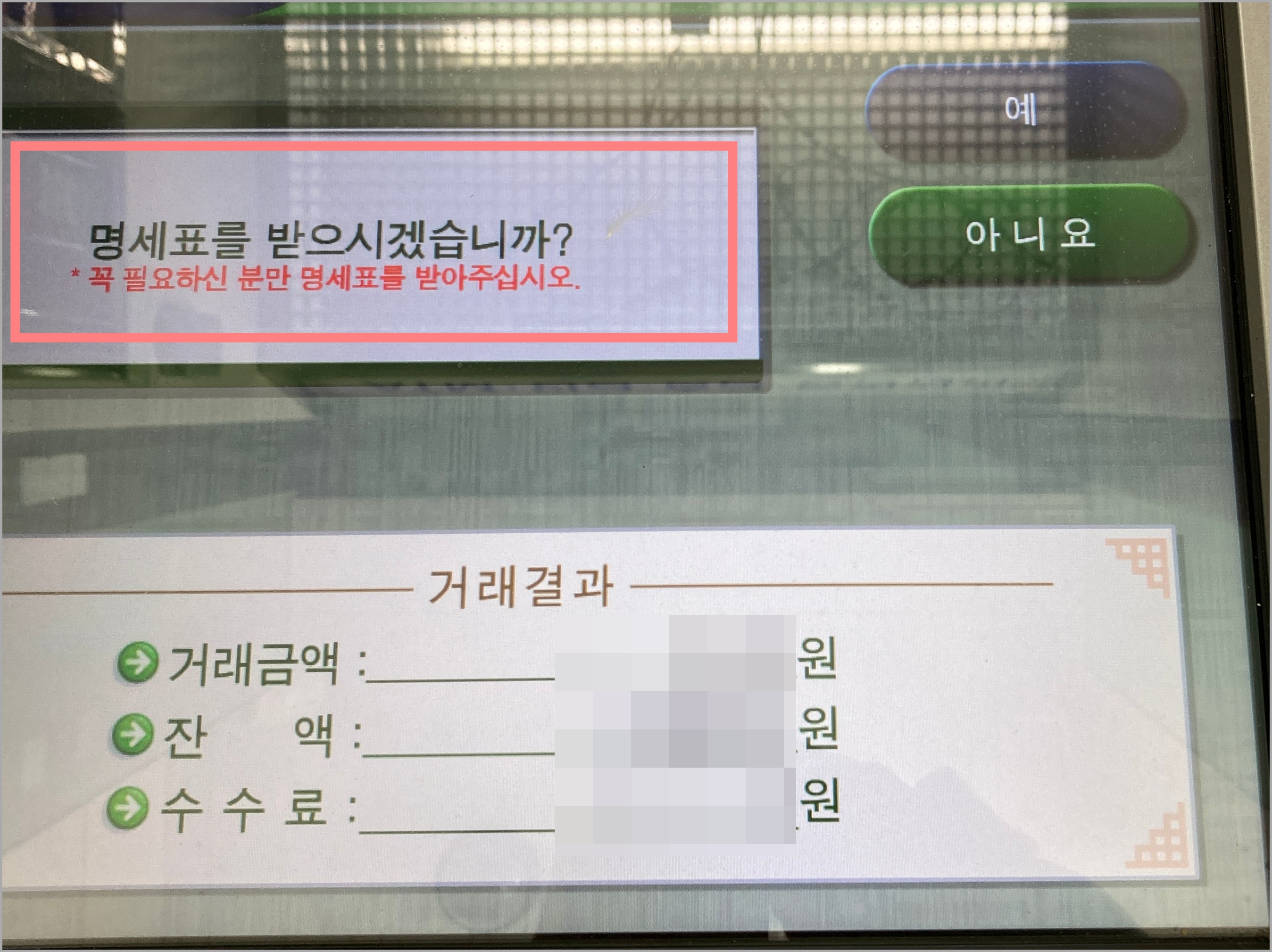 거래금액을 확인하고, 명세표 받을지 확인하면 끝입니다.