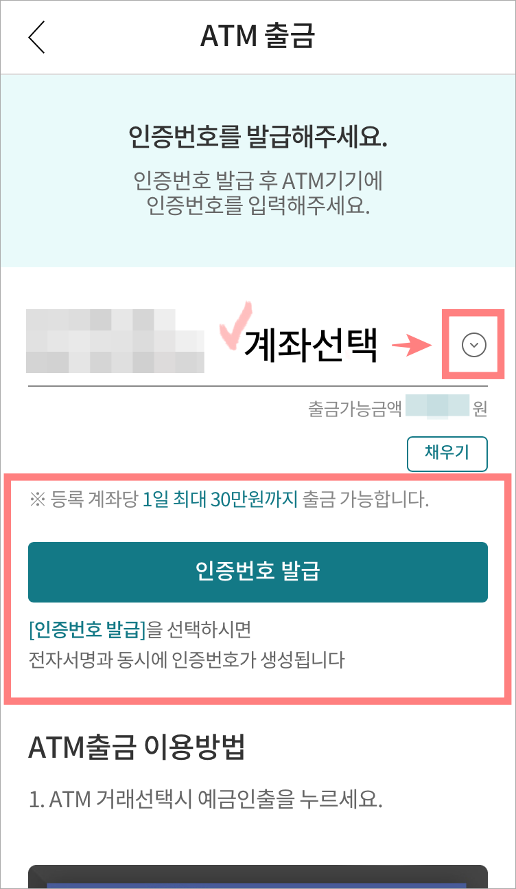 ↘ 콕뱅크 앱으로 ATM출금 이용 방법