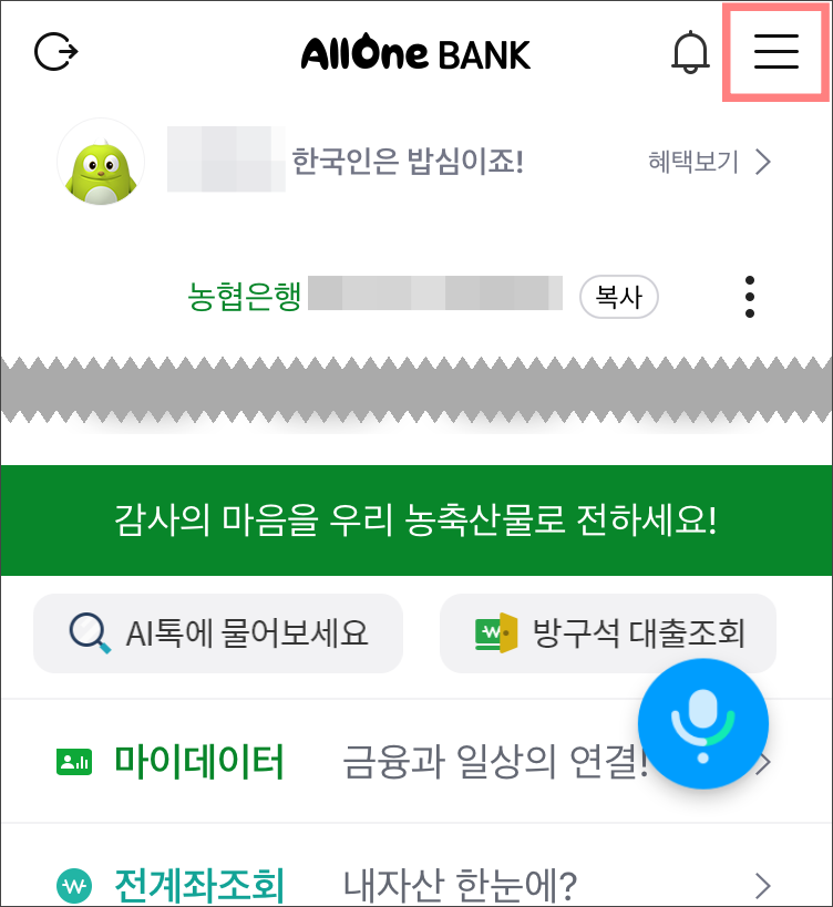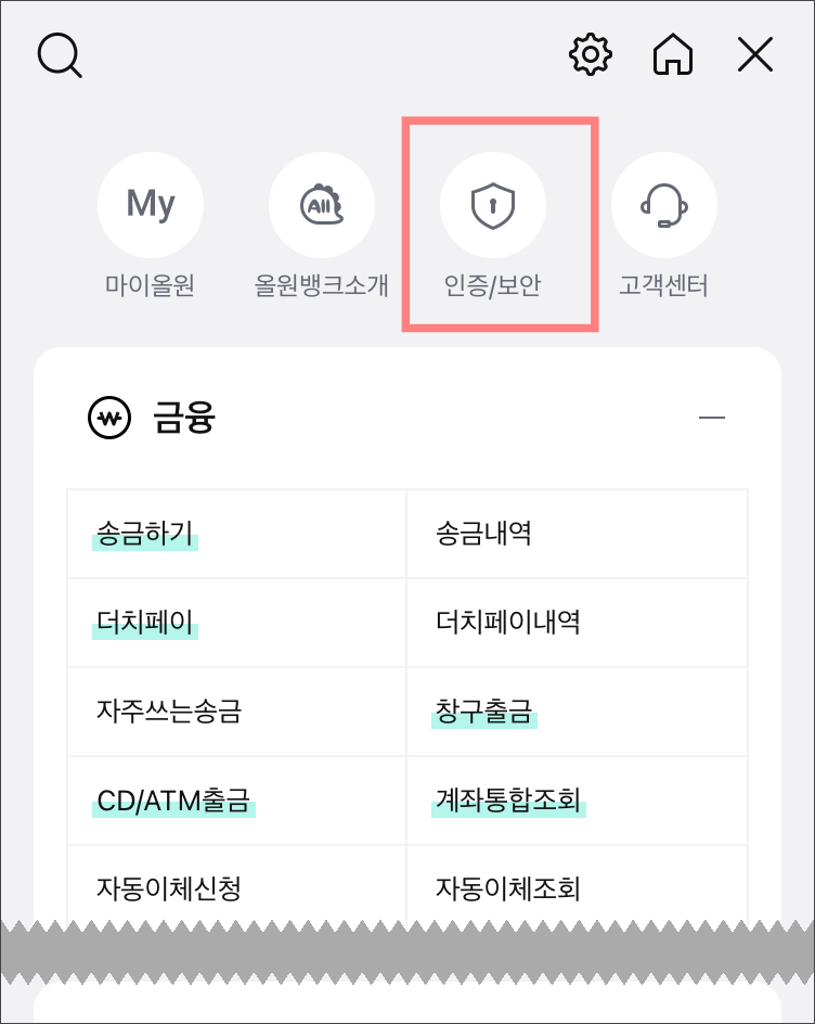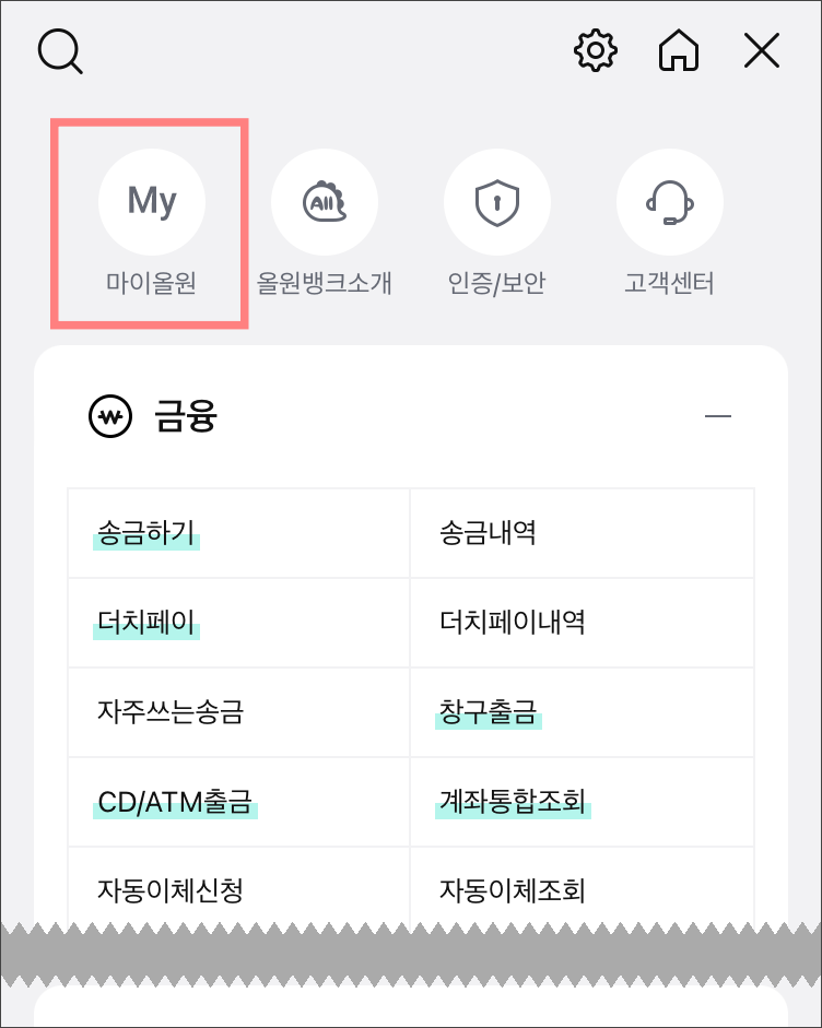 올원뱅크 앱으로 들어가서 로그인한 후,