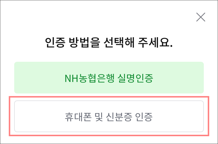 휴대폰 및 신분증 인증 방법을 선택합니다.