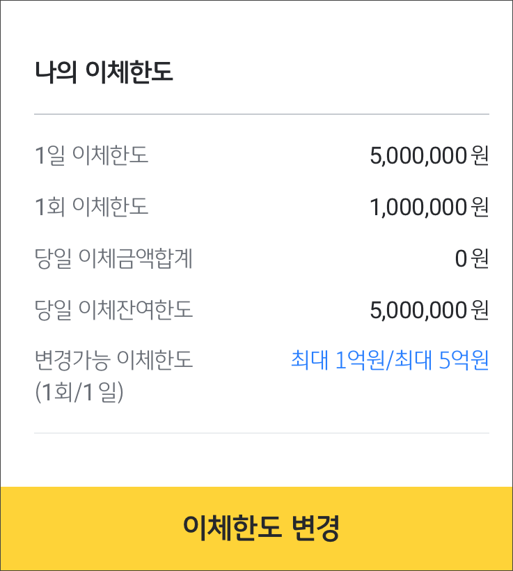 | KB국민은행 이체한도 매체별 증액 가능 금액 (0) | 2022.01.25 |