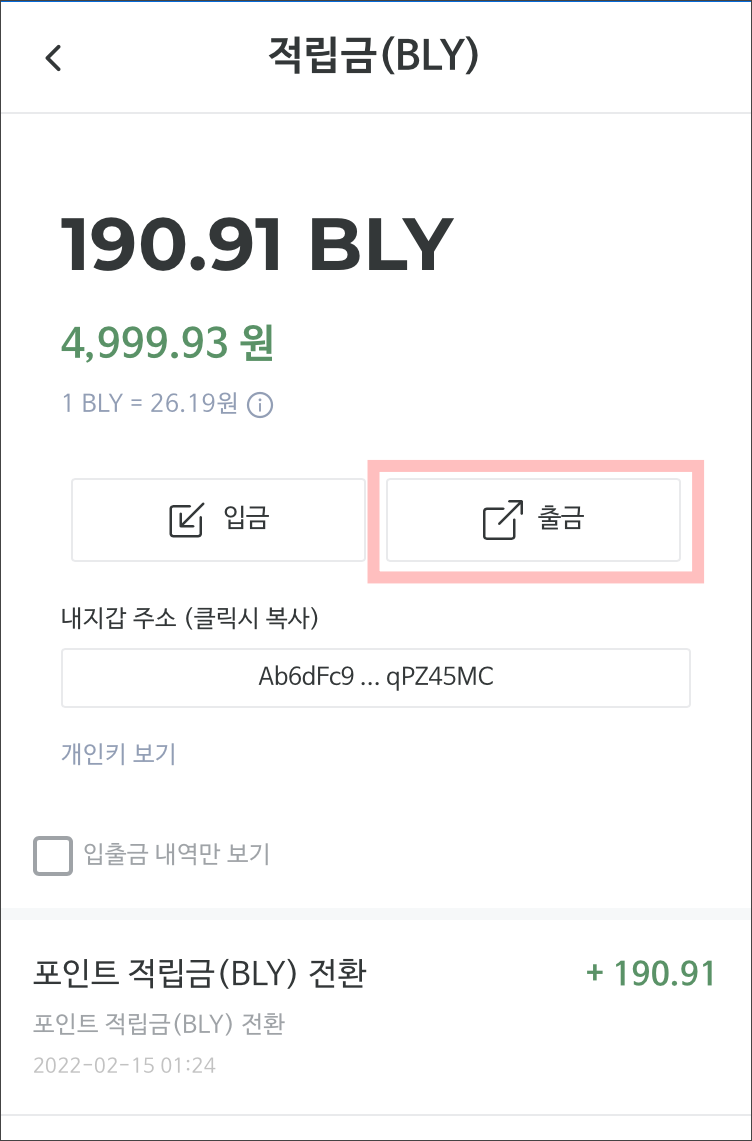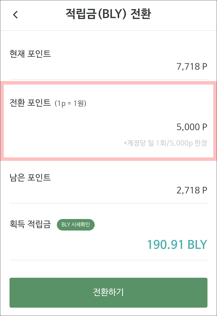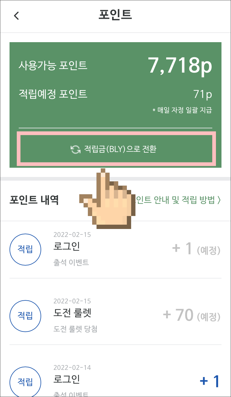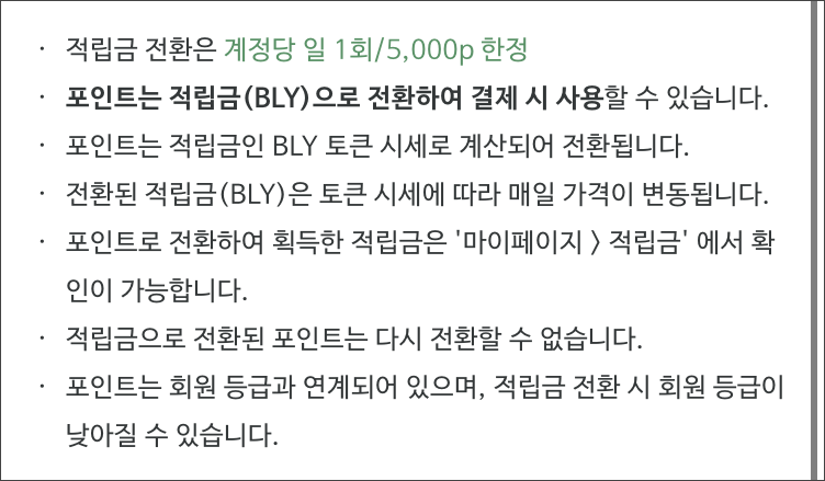 ↘ 포인트를 적립금(BLY토큰)으로 전환