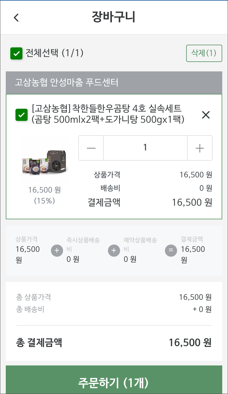 원하는 물건을 선택하여 장바구니에 넣습니다.