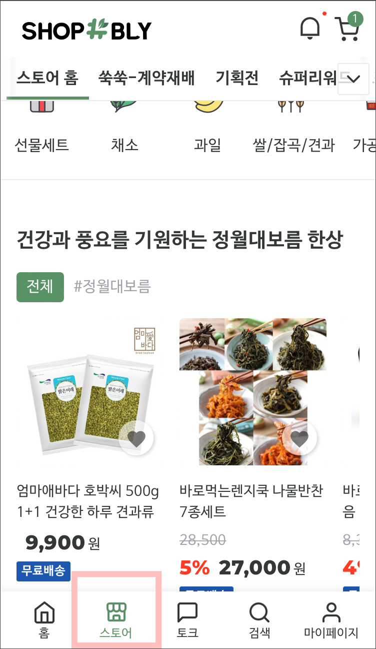 샵블리 앱에서 스토어로 들어가줍니다.