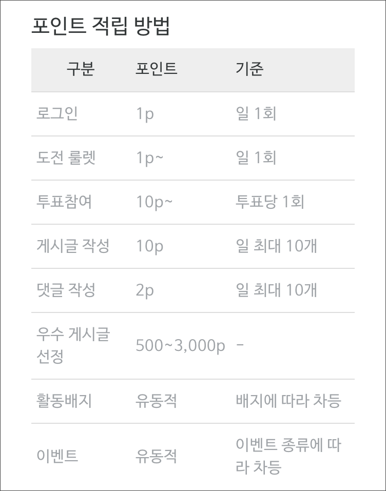 출석은 하루 1P로 따로 체크하지 않아도 되고, 룰렛은 매일 돌려줍니다.