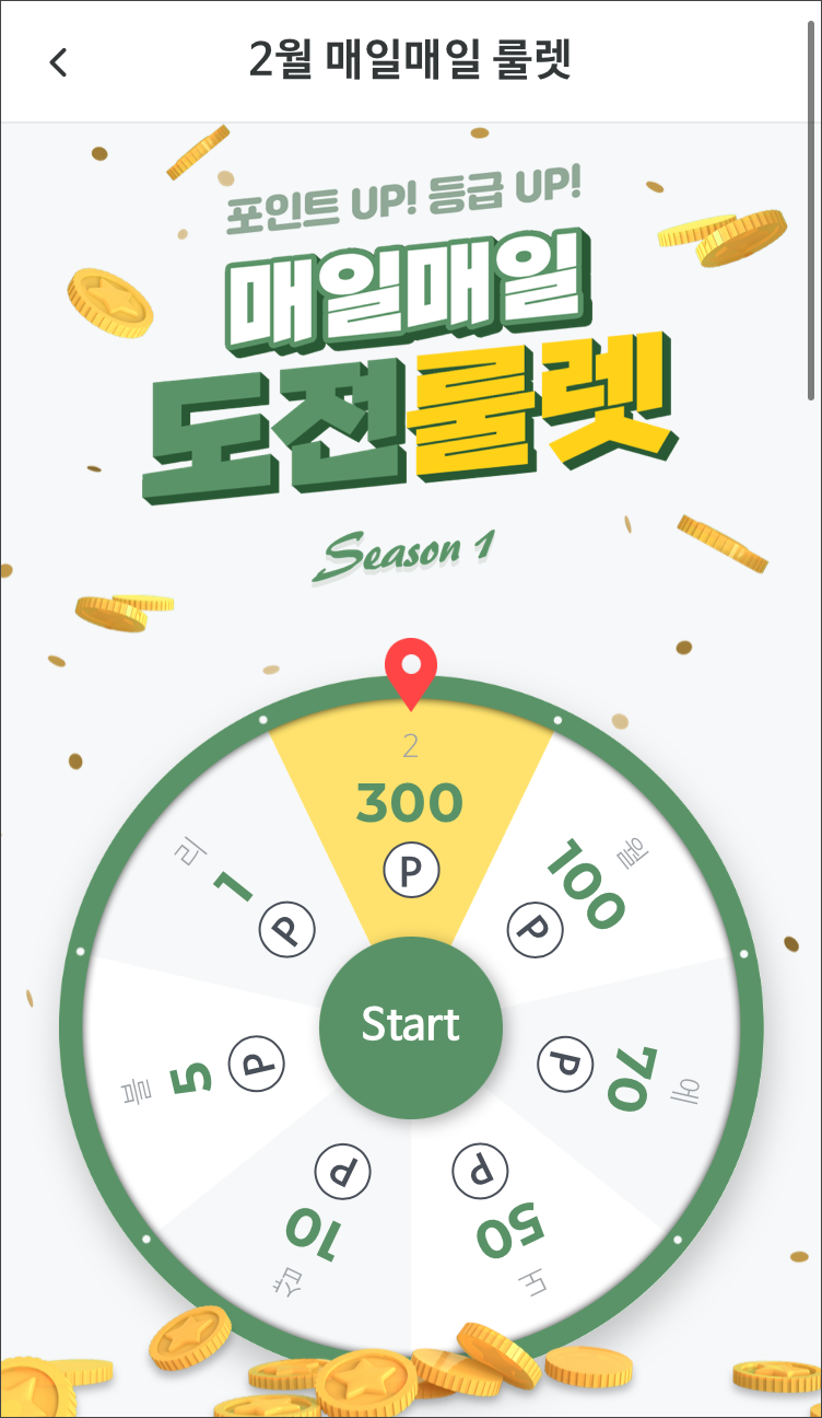 룰렛으로는 1P~300P까지 나올 수 있어요 .
