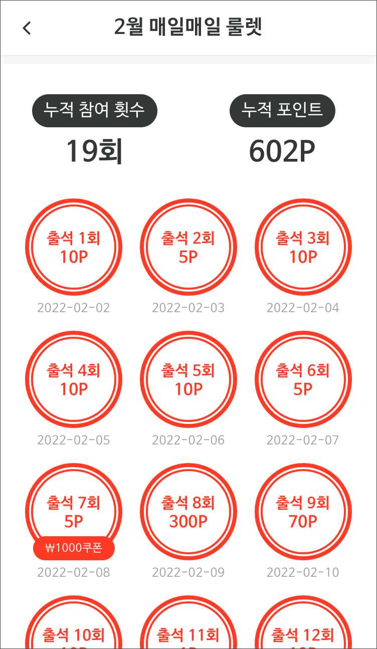 포인트 외에도 누적 참여 횟수에 따라서 쿠폰이 지급됩니다.