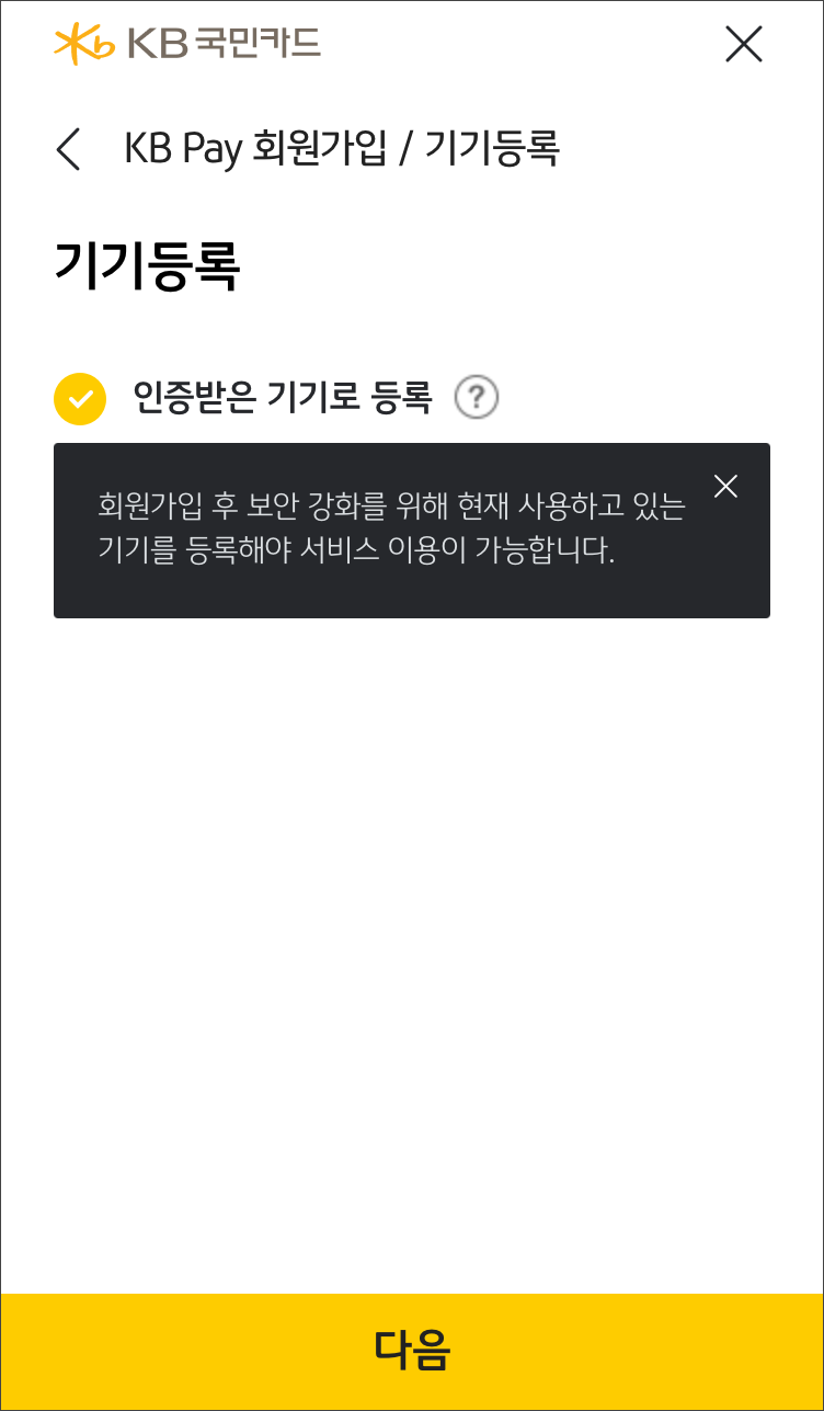 - 기기등록 (인증받은 기기로 등록해야만 서비스 이용 가능)