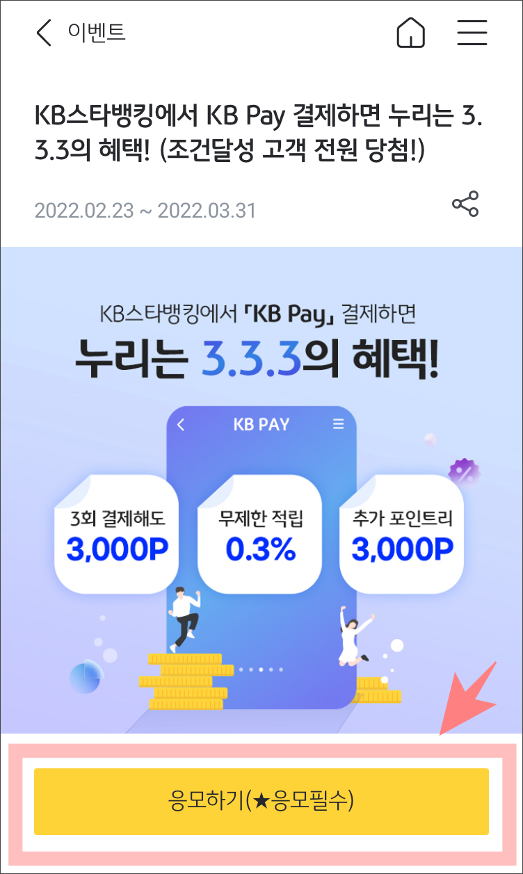1. 이벤트는 KB스타뱅킹앱에서 이벤트에 응모하기를 클릭한 후,