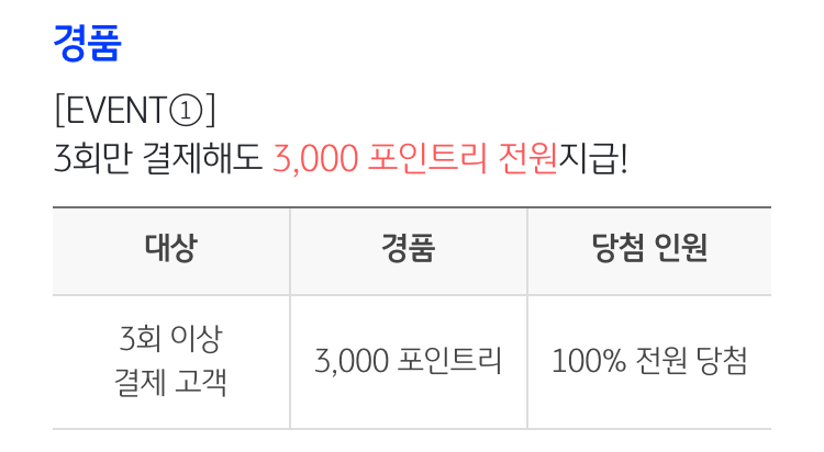 회원가입만 하면 3,000포인트리 지급이 아니라, 건당 1,000원이상 3건 이상 결제해야 지급되는 부분입니다. 정해진 기간에 이용을 해야하는거죠~