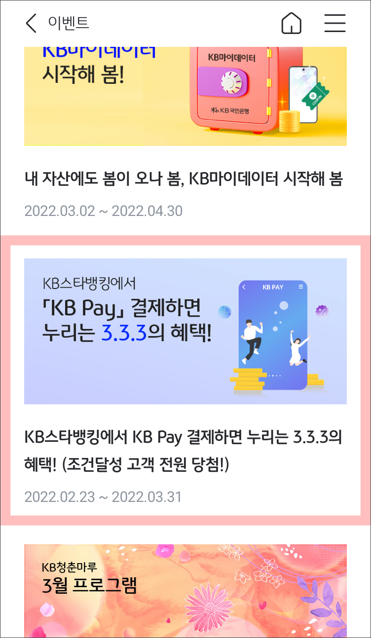 이벤트는 KB스타뱅킹어플에서 확인 가능합니다.