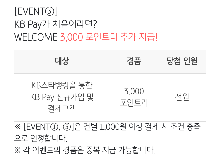 3. KB Pay가 처음이면 3,000포인트리 추가로 지급된다고 하네요.