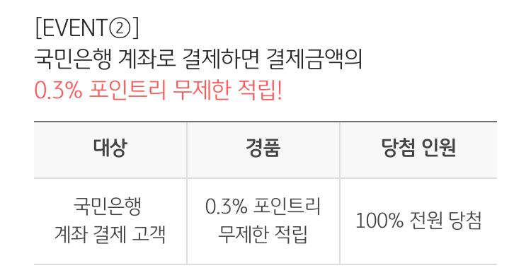 2. 또한, 국민은행 계좌로 결제하게 되면 결제금액의 0.3%포인트리 무제한 적립이라고 하네요..