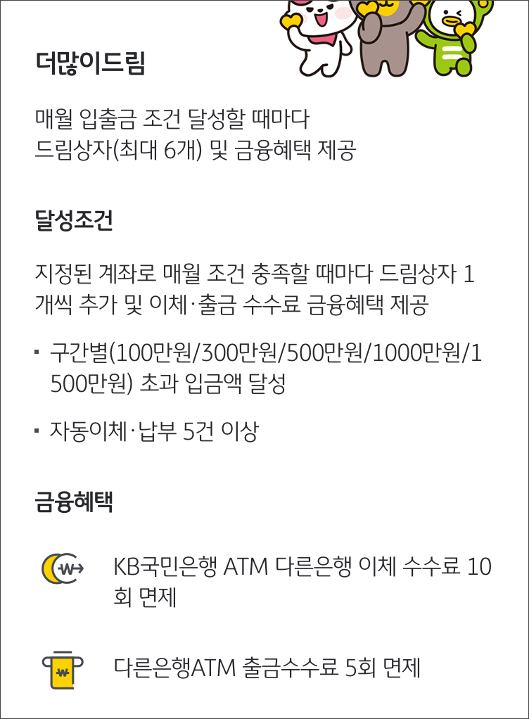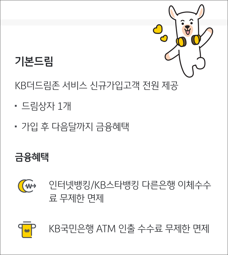 더드림존서비스는 KB국민은행를 주계좌로 이용하시는 분들이 혜택 받는데 유리할 것 같은데요~