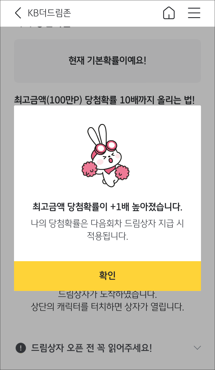 up된 당첨확률은 다음회차 드림상자 지급시 적용된다고해요~