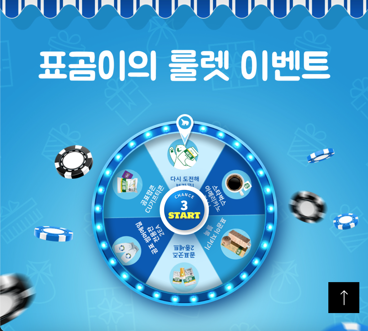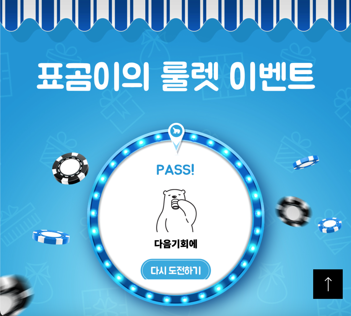 하지만, 바로 다시 도전하기가 되더라구요~ 보통 이런 이벤트에는 룰렛을 돌리는 시간이 정해져 있던데, 표곰이 이벤트는 연달아 세번의 도전이 가능한가 봅니다.