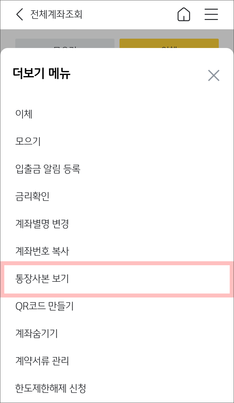 KB스타뱅킹앱에서 비대면 계좌 통장사본 보기
