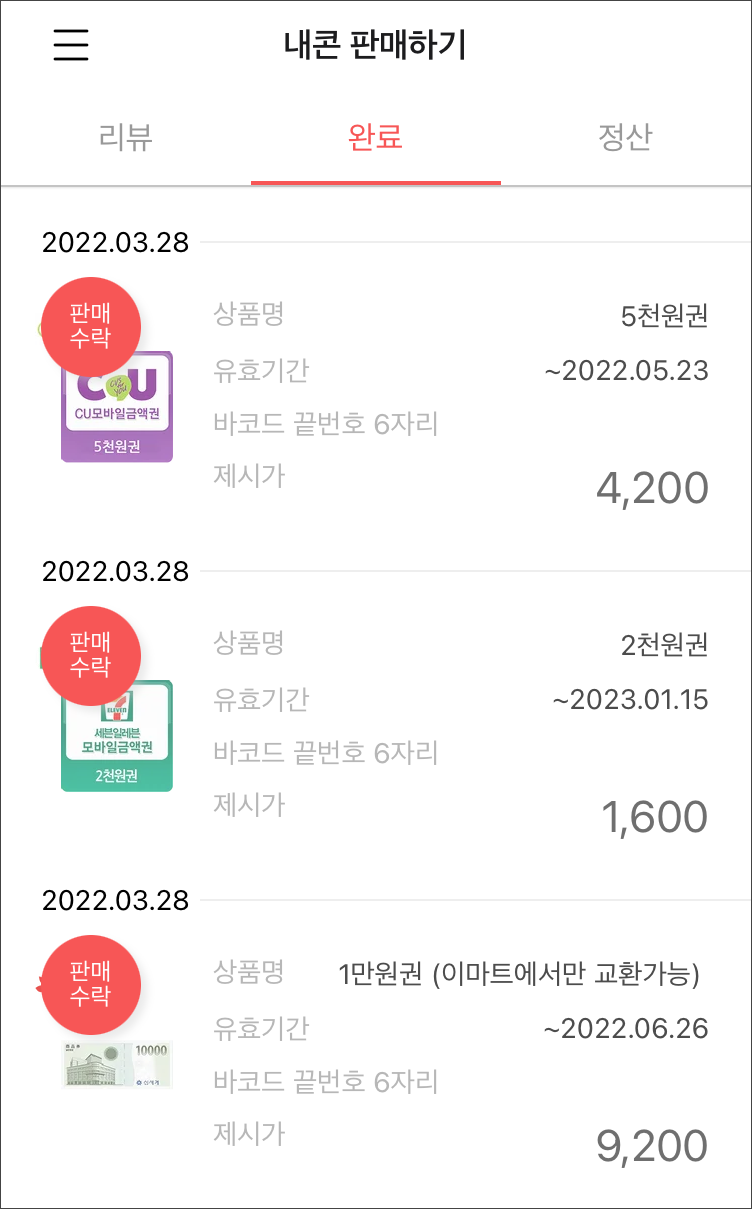 유효기간이 여유있을 때 기프티콘, 기프티스타 등에 판매하기를 통해 판매하여 계좌로 수익금을 받고 있습니다.
