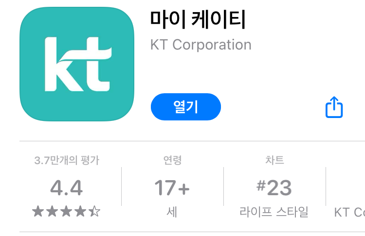 마이케이티앱은 앱스토어나 플레이스토어에서 다운 받아 사용할 수 있습니다.