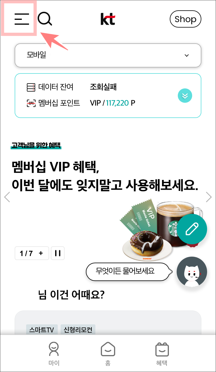 - 마이케이티앱에서 변경하기