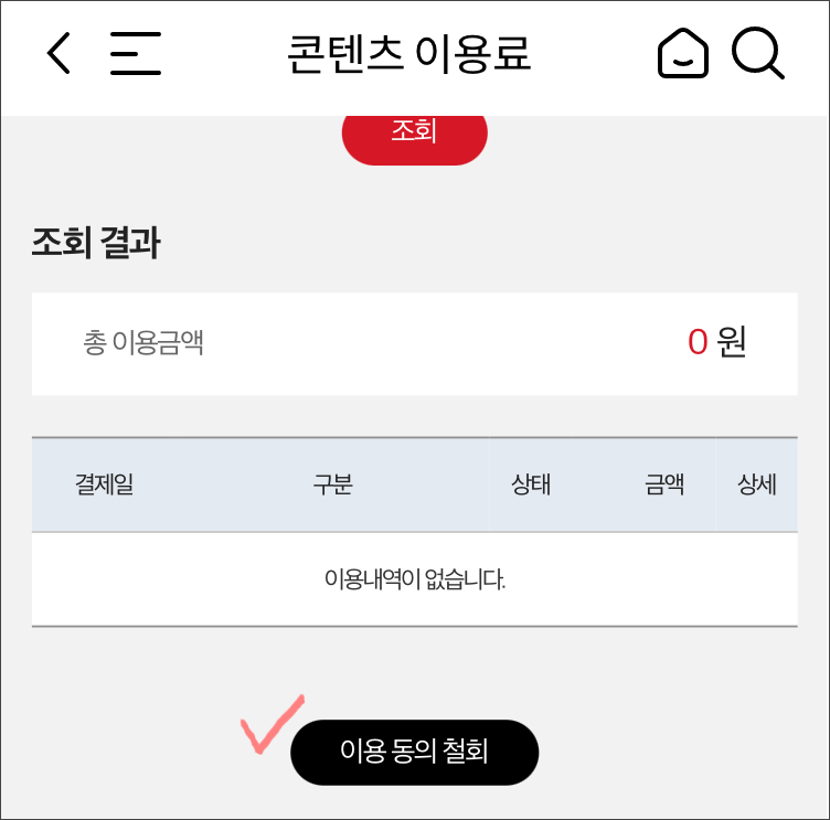 해당 메뉴로 들어왔다면, 콘텐츠 이용료에 대하여 확인이 가능한데요~