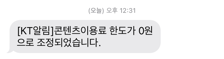 나중에 인터넷으로 검색해보니 실제로 이런 콘텐츠 이용료 결제사기피해가 있어서, 자신도 모르는 사이에 결제되었다는 문자를 받게되어 난감한 경우들이 생긴다고합니다. 이를 예방하려면 콘텐츠이용료 금액을 낮게 설정하거나, 이용하지 않을 계획이라면 아예 차단을 해버리는 것이 좋을 것 같습니다.