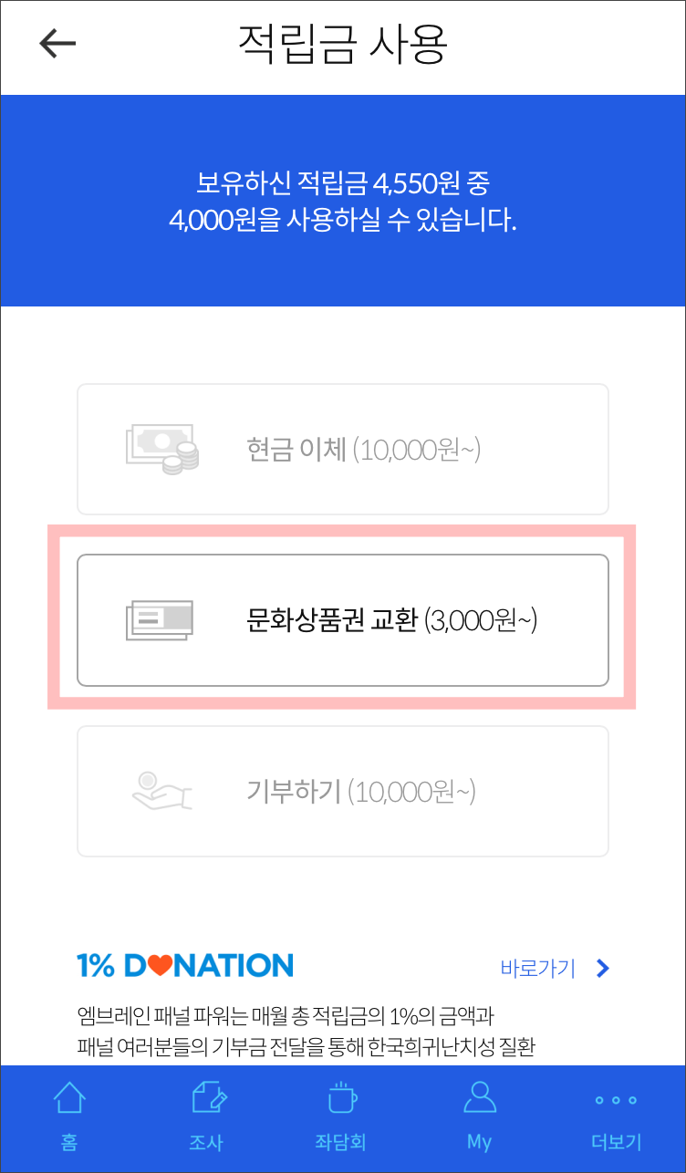 설문조사 엠브레인 패널파워 적립금, 문화상품권으로 교환하기