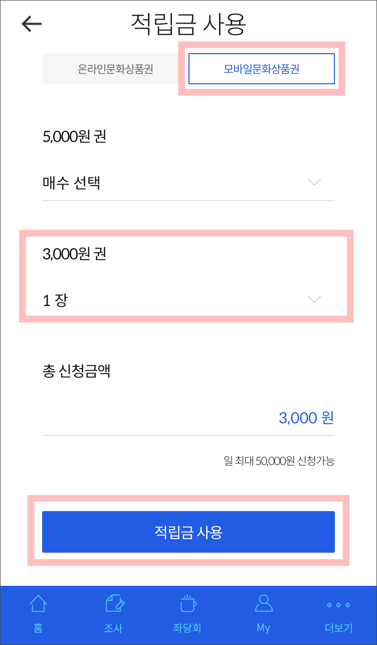 적립금은 3,000원부터 문화상품권으로 교환이 가능하고, 10,000원부터는 현금으로 출금이 가능해집니다.