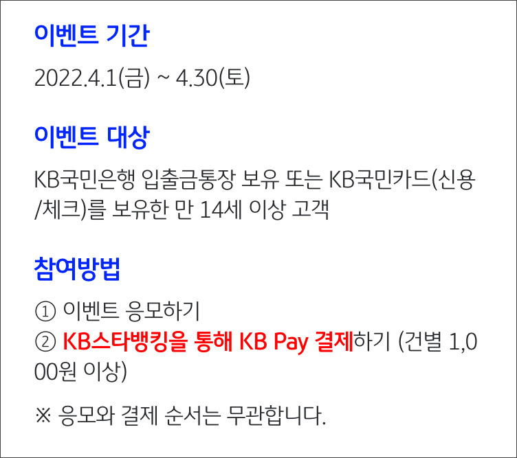 4월 1일 ~ 30일, KB페이 간편결제 이벤트!
